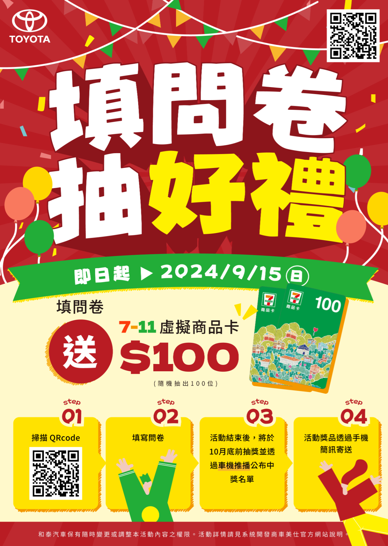 車聯網會員抽獎活動!掃描QR code填問卷,就抽7-11虛擬商品卡100元!