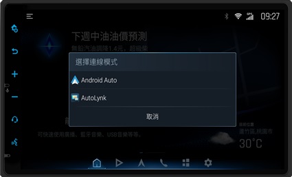 - 車機跳出「選擇連線模式」對話框,點選 「 Android Auto」