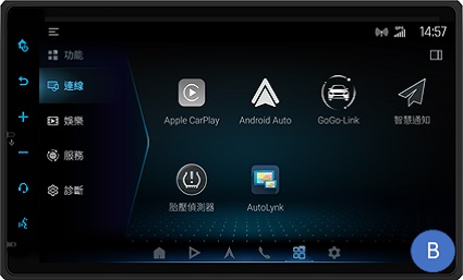 - 首次透過有線成功連結 Android Auto後,Android Auto提供安全的方式使用Apps像是音樂、通訊軟體或是導航;點選「 Car Media 」圖示則可回到車機頁面
