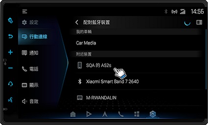 - 若 Android 手機與車機尚未連接過 USB 傳輸線,則需透過操作藍牙連結,觸發無線 Android Auto