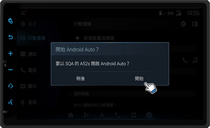 - 完成連線後,車機跳出「開始 Android Auto 」對話框,點選「開始」啟動無線; Android Auto。
