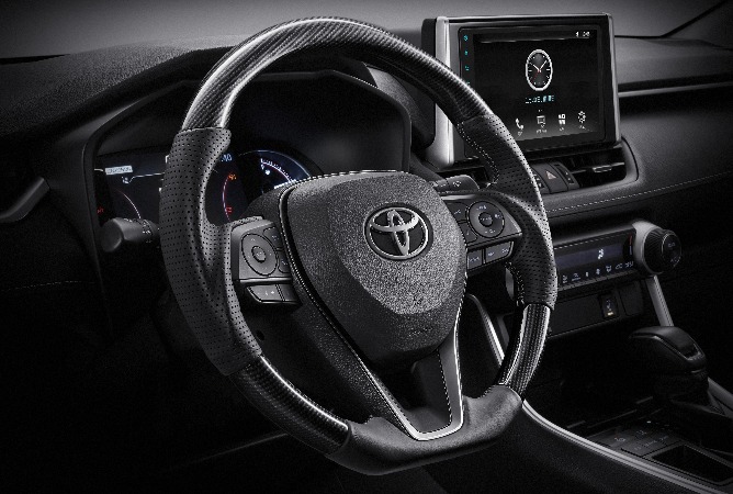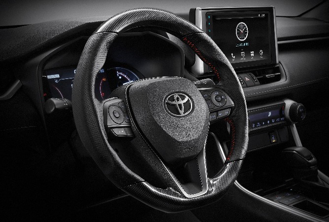 精選類碳纖維紋路與高級皮革搭配,提供絕佳觸感,獨一無二風格方向盤,使車室內的整體質感再提升。